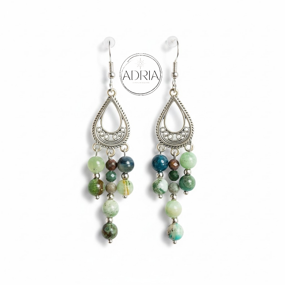 Bracelet en perles de Chrysoprase et acier inoxydable argenté.